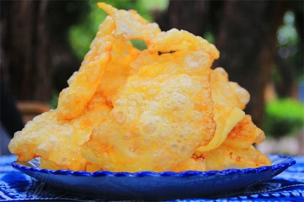 金黃酥脆的鄧川乳扇咬一口奶香四溢在炎炎夏日里擰開一瓶冰牛奶乳白的清涼滑入喉間瞬間澆滅燥熱只留沁心甜香在唇